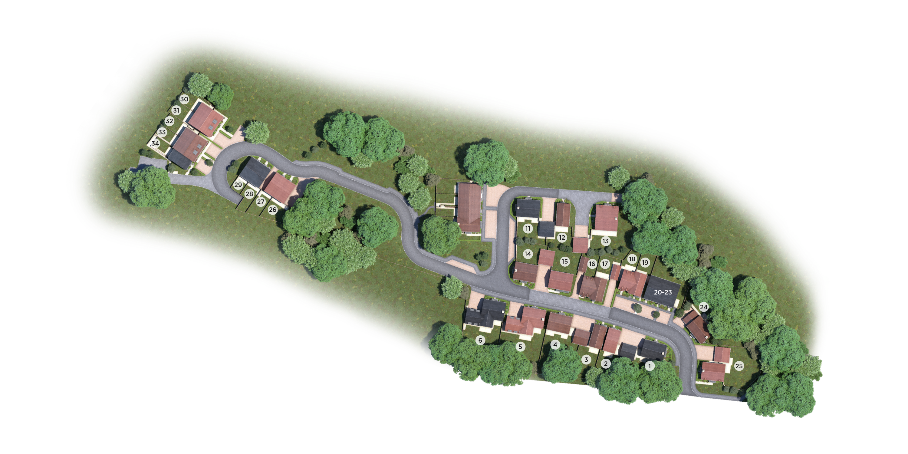 A collection of 34 family homes set in a wooded area on the edge of a quintessentially English village in Oxfordshire.