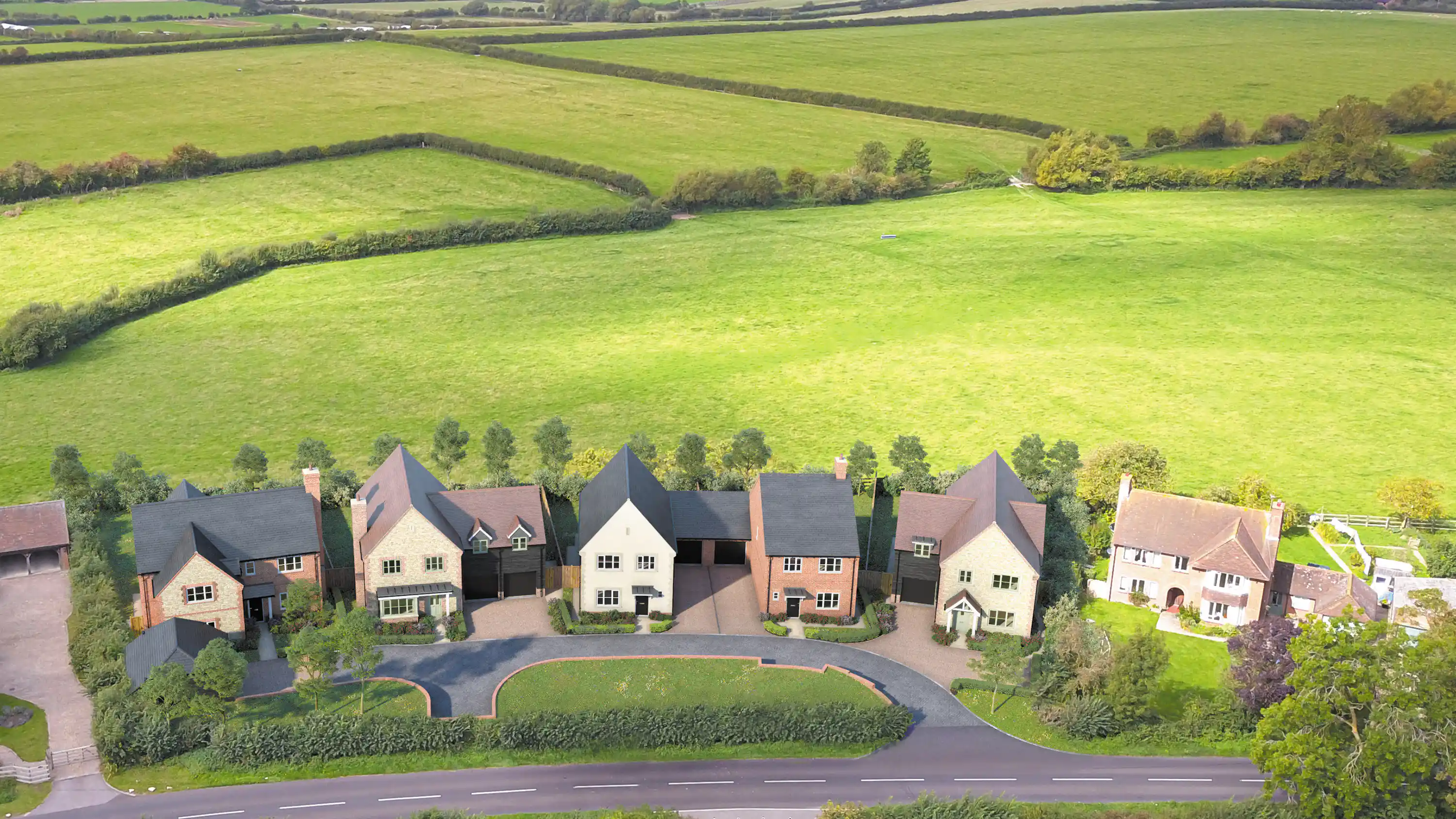 This collection of 5 beautifully designed individual homes, have gardens backing directly onto rolling hills and open farmland.